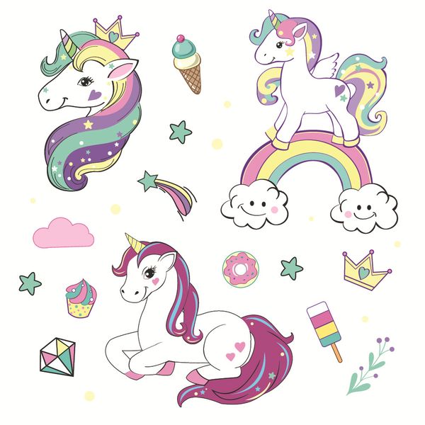 Unicorn Wall Stickers Colorful Cute Cartoon Unicorn Horse Wall Decals For Kids Girls Room Diy Poster Wallpaper Home Decor