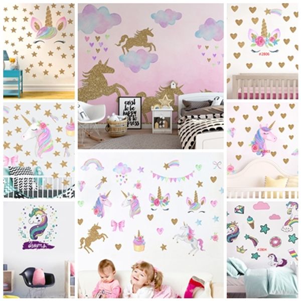 Cartoon Cute Unicorns Star Heart Wall Stickers Kids Room Decor Diy Home Wall Decals