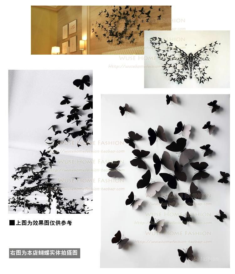 Dopin 3d Vivid Special Man Made Lively Butterfly Art Diy Decor Wall Stickers Wall Decor Kids Room Bedroom Living Room Black