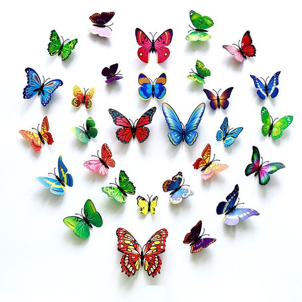 12pcs Mix Size 3d Butterfly Decals Creative Double Layer Color Butterfly Wall Paste Wall Decor Butterflies Diy Wall Stickers